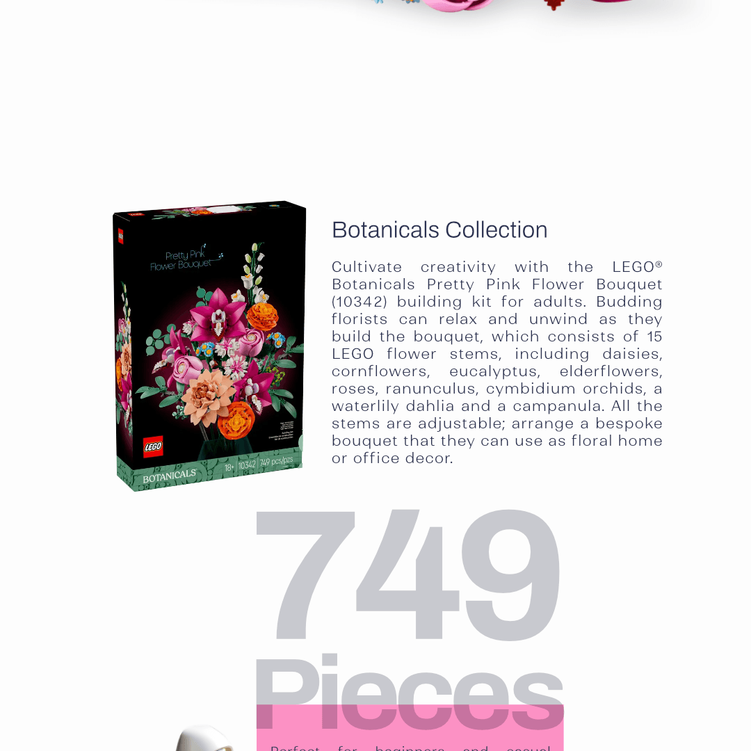 Cultivate creativity with the LEGO® Botanicals Pretty Pink Flower Bouquet (10342) building kit for adults. Bursting with authentic blooms and lovely colors that will never fade, this LEGO flower decor set is a delightful gift for women, men and nature-lovers.